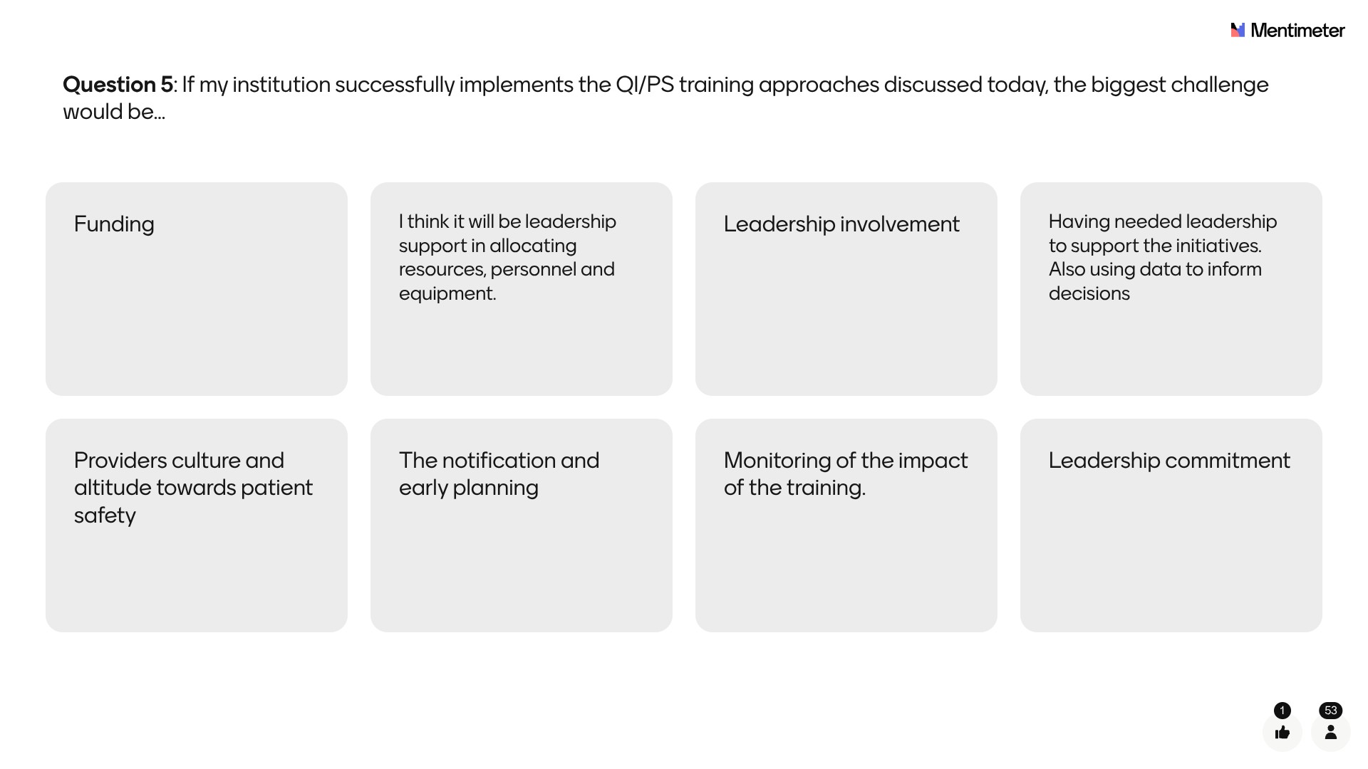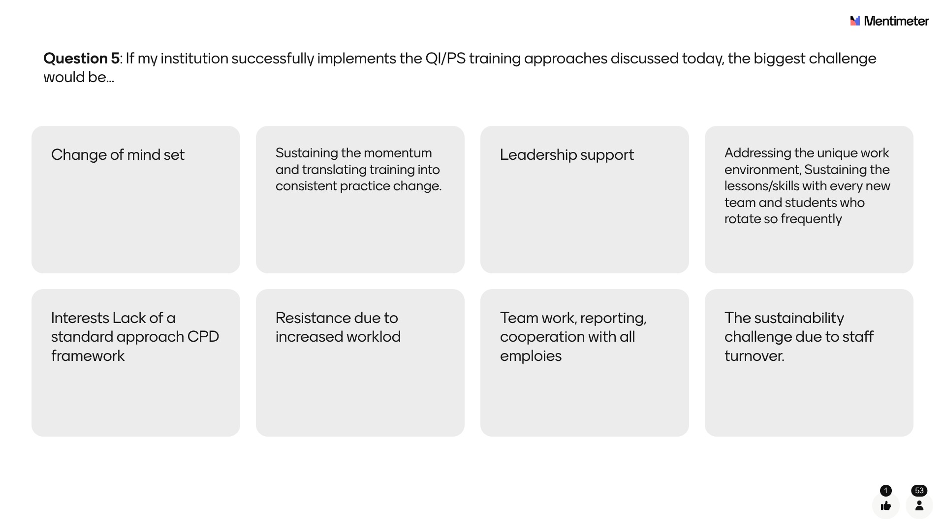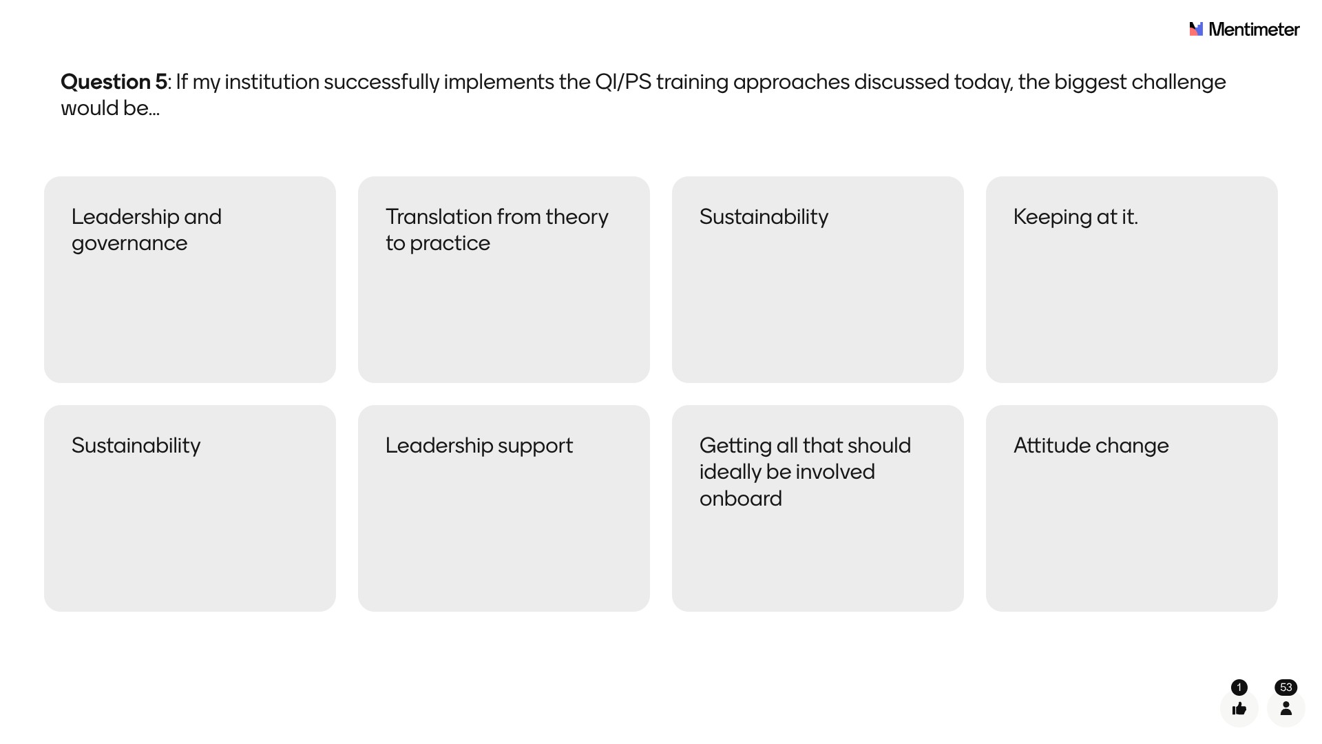 When conducting QI and patient safety training, assessing organizational readiness, understanding the environment, and engaging leadership are key to ensuring that lessons translate into lasting improvements and empowered frontline teams.